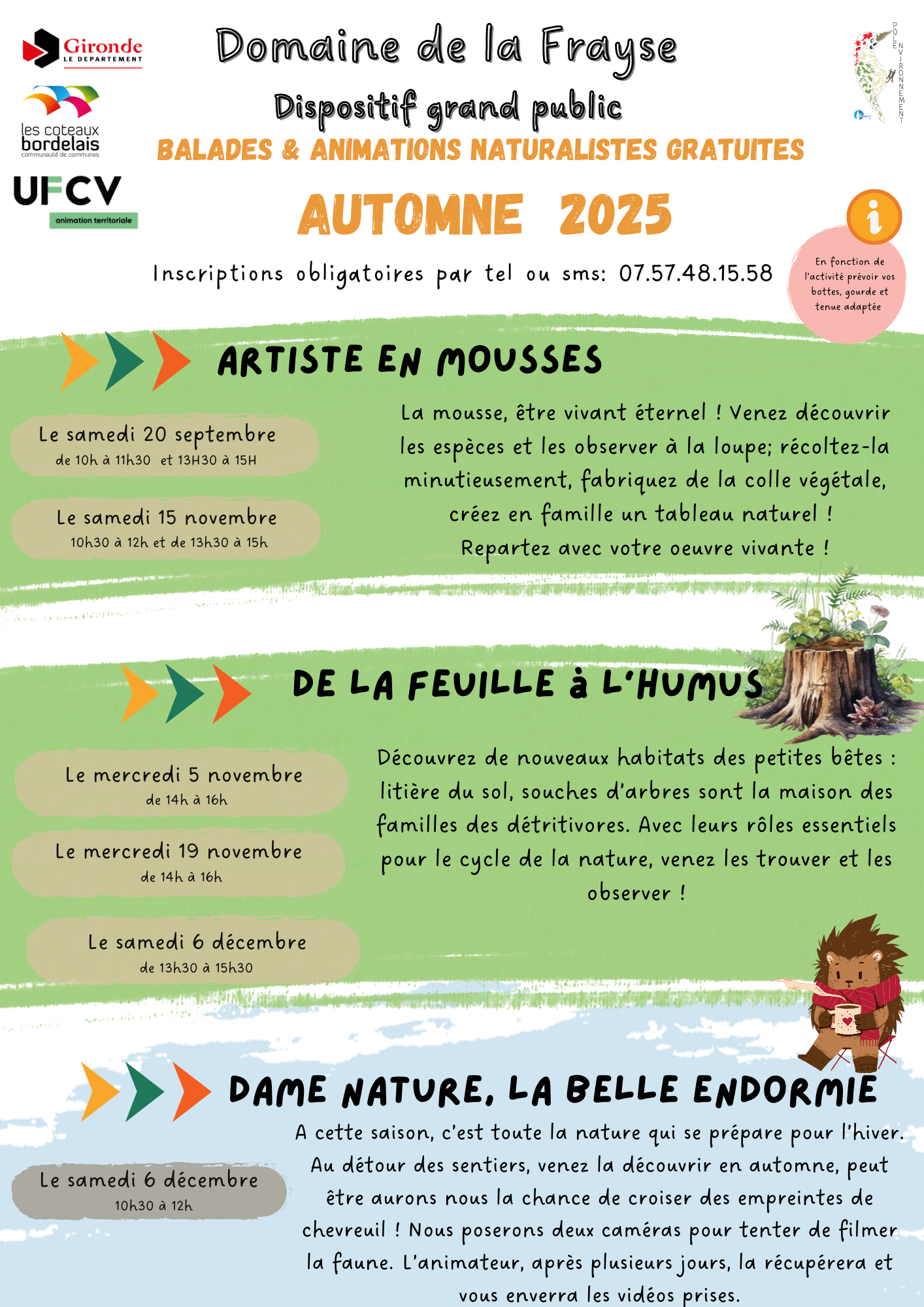 Les événements au Domaine de la Frayse Cliquer sur les vignettes, pour plus d'informations. Automne 2025 En savoir plus Découvrons la nature Agenda 2025 En savoir plus